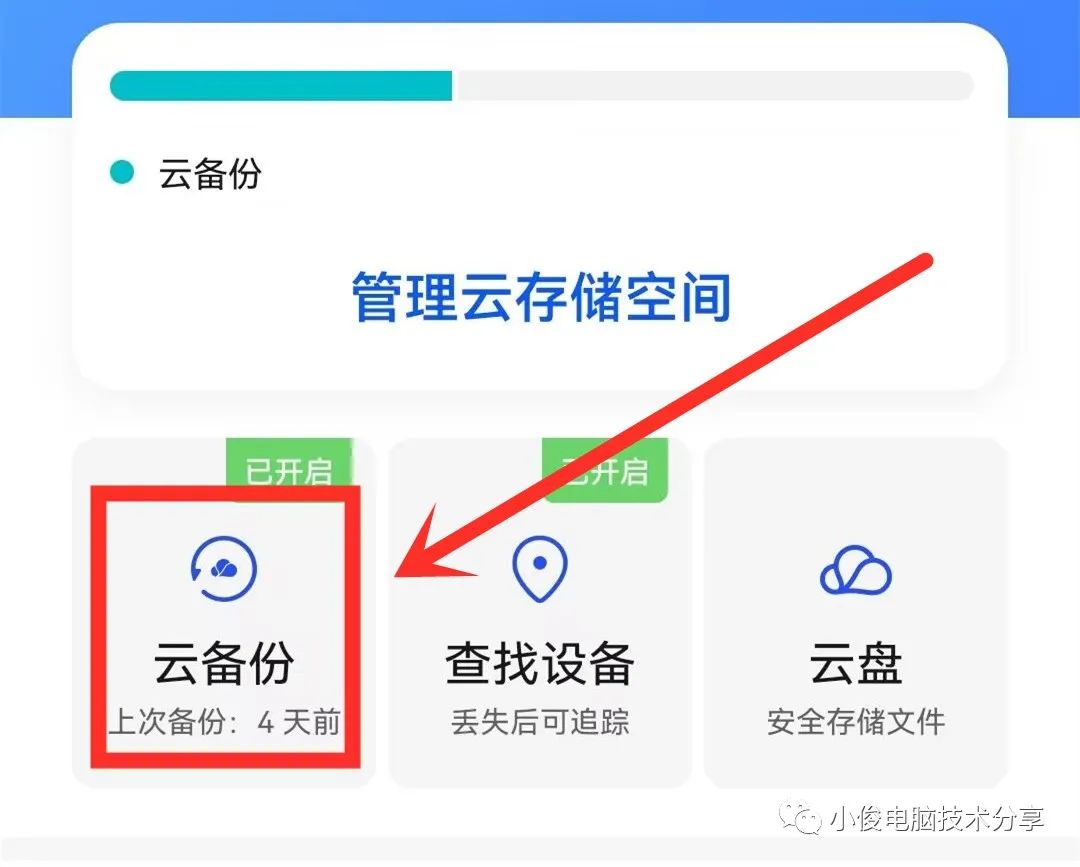 第二种方法通过手机云备份备份微信聊天记录,我们同样打开手机的云备份,然后点击下面的备份选项