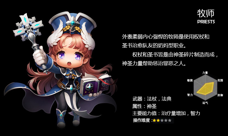 牧师是冒险岛2唯一的治疗职业,职业需求的属性是魔改攻击力、HP和暴击。官方给出的操作难度是2颗星,适合组队型的新手玩家。但到底牧师怎么样呢?还是看冒险岛2牧师技能介绍及输出手法了解下吧。