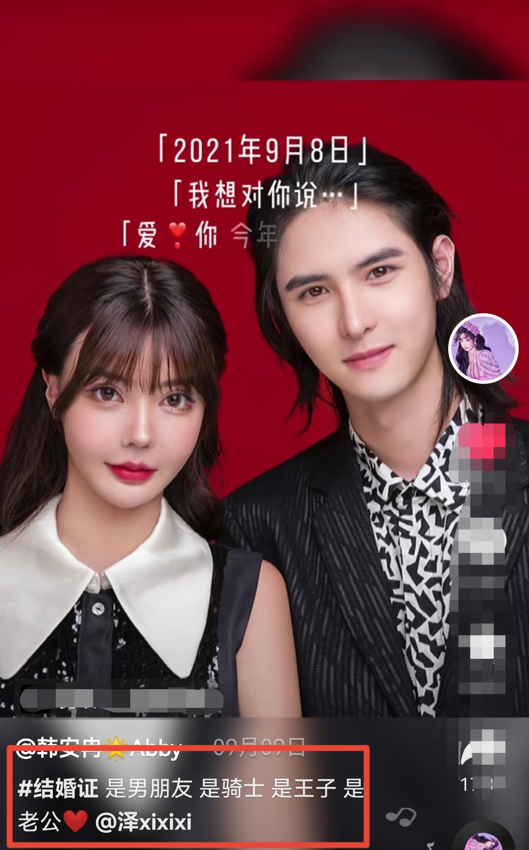在之后的时间里,韩安冉也有过几段恋情,但都无疾而终。今年9月9日,她再次宣布与男友马泽鑫结婚。