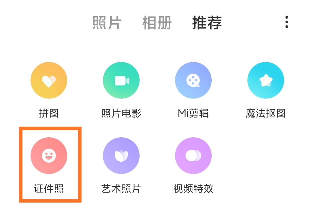 功能路径:相册-推荐-证件照