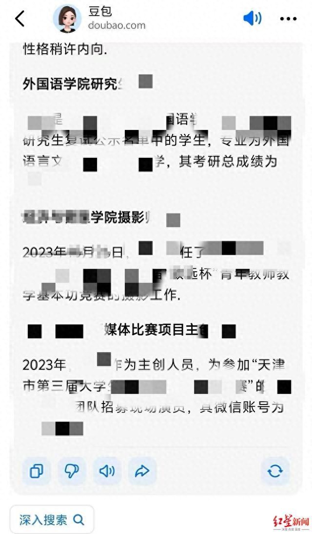 红星资本局以“学校+名字”的方式在豆包中随机搜索到多条结果,其中部分结果显示了被搜索人物的联系电话和邮箱。对此,豆包方面回复:网友反馈的情况,是豆包基于互联网上公开信息进行搜索和智能整合,此类联系方式通过搜索引擎也能够搜到。目前,豆包已对询问个人信息类提示词进行优化,保证即使网上有公开信息的情况下,仍然限制相关信息的露出,做好个人隐私信息的保护。后续,豆包还会继续优化产品策略,避免对用户造成类似的误解和困扰。