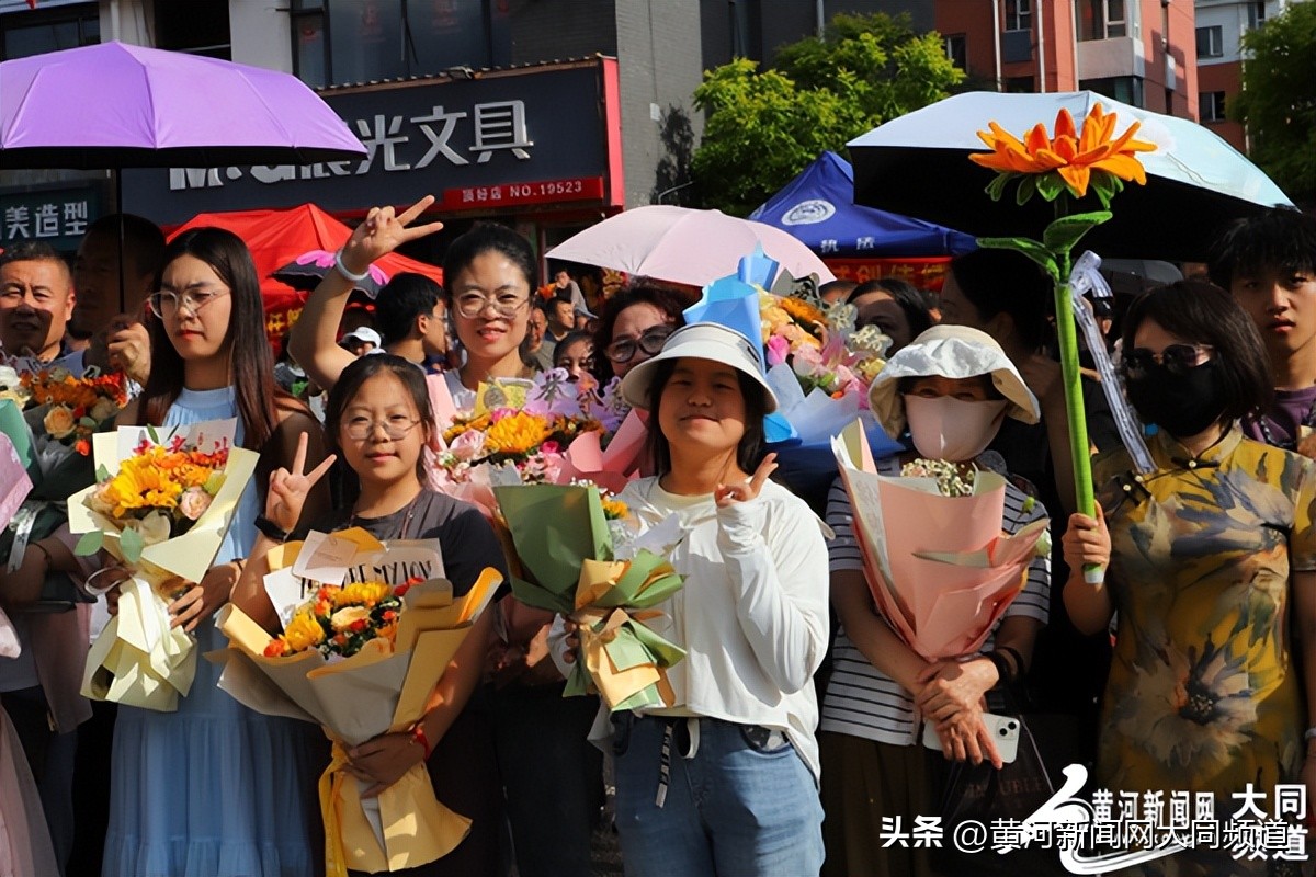 在大同的各个考点外,家长们早已按捺不住内心的激动,早早地守候在考场门口。有的家长手捧鲜花,仿佛捧着一颗颗跳动的心,期待着孩子走出考场的那一刻;有的家长则举起手机,镜头对准考场出口,捕捉着孩子走出考场的每一个瞬间;还有的家长举着写有鼓励话语的手牌,无声地传递着爱与支持。