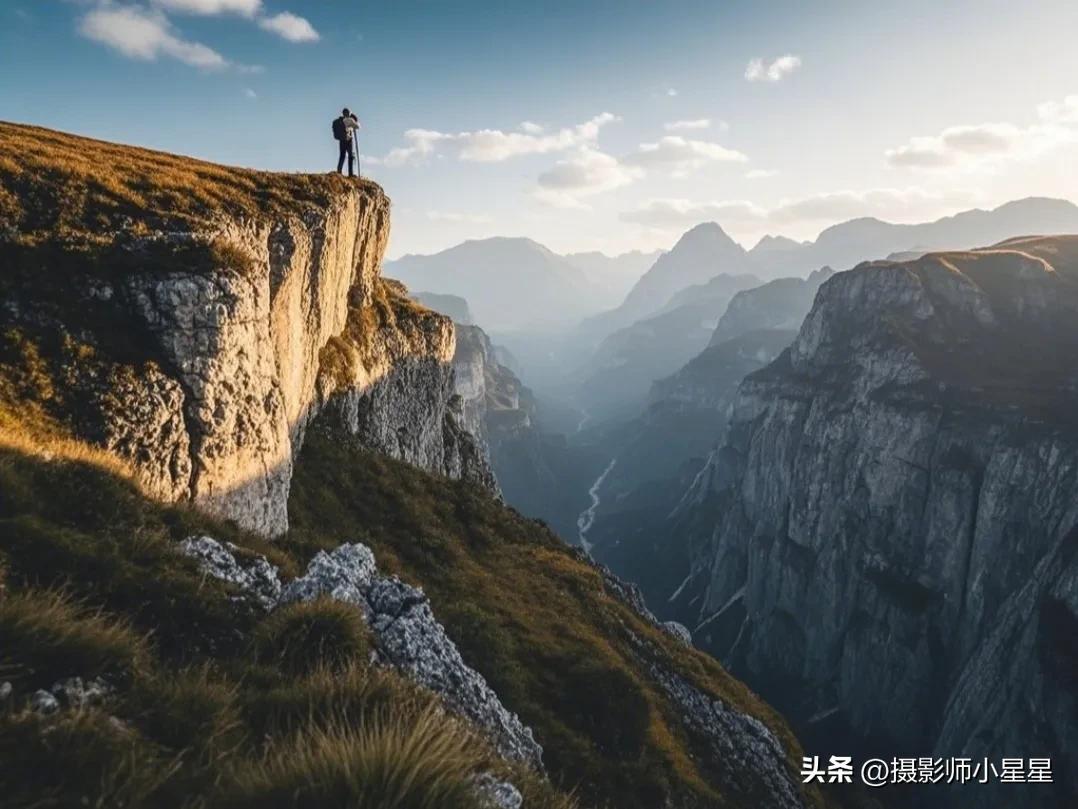 站在悬崖边缘,使用超广角镜头向下拍摄,可以展现悬崖的险峻与壮美。