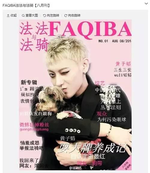 黄子韬的招黑体质甚至为自己圈了一批黑粉。他们自称“法骑”,高喊“三生三世,五里韬韬”,守护法王永相随。▼