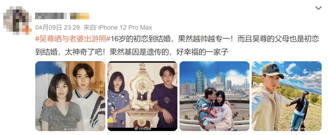 对此网友纷纷表示:“16岁的初恋到结婚,果然越帅越专一!”“羡慕已经说累了~”“日子怎么可能和谁过都一样”“又相信爱情了!吴尊把初恋谈到儿女双全”……