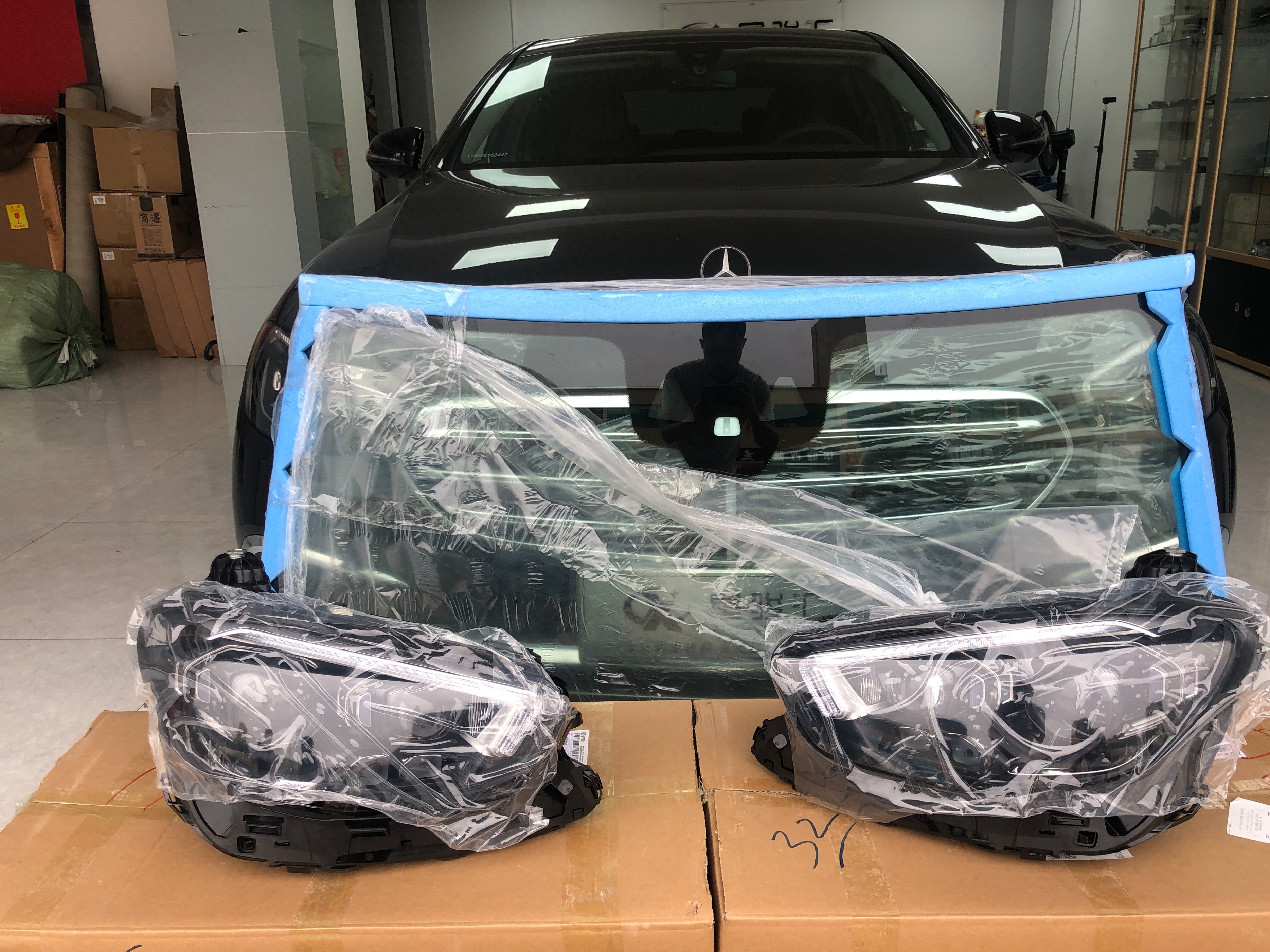 奔驰E300L时尚型,豪华型以及被减配的尊贵型都可以原厂无损升级几何多光束LED大灯