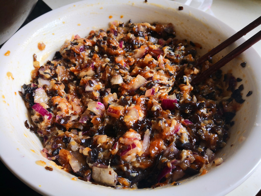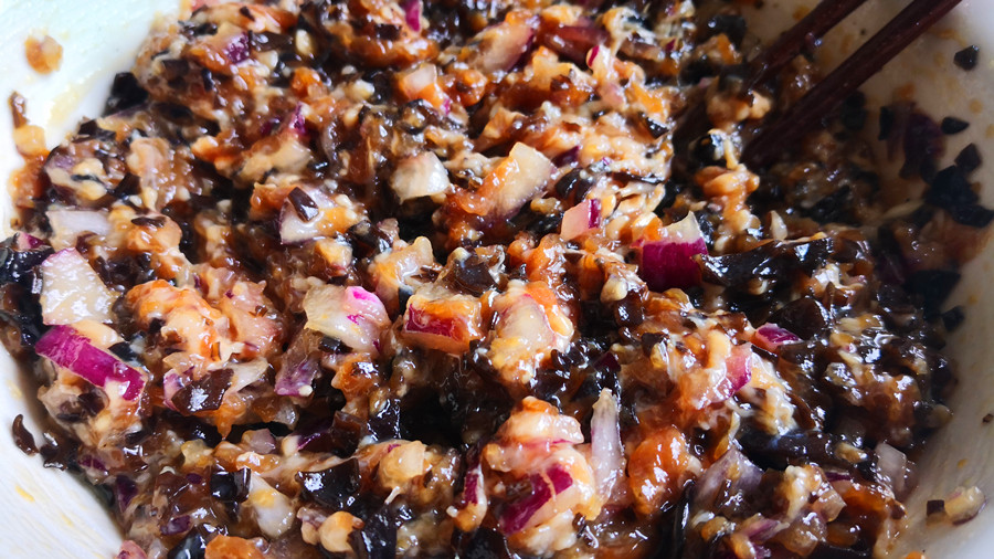 洋葱剁细后不需要加盐刹水,因为肉馅中我们没有打水,正好用洋葱刹出的汁水调肉馅,味道鲜甜可口;切好的洋葱要在开始包饺子时再加入,不要提前加入,否则放入的时间久了,味道不好。