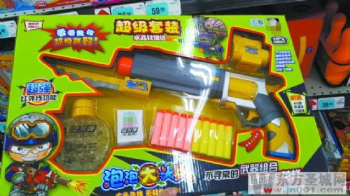 “以前的玩具枪发射的子弹都是硬硬的塑料弹珠,很不安全,现在玩具枪基本上都换成了这种软弹枪,吸水弹用水泡发后就可以使用,孩子能开心玩,家长也不用担心孩子会射伤眼睛。”在市区琵琶山路一家超市的玩具区,记者看到一款售价为49元的吸水弹软弹枪,其中标注着“适合6岁年龄以上”、“安全、无毒、环保”的字样,导购员告诉记者,这种既能发出逼真枪声,又能发射吸水软弹的玩具枪受到不少家长和小朋友的欢迎。