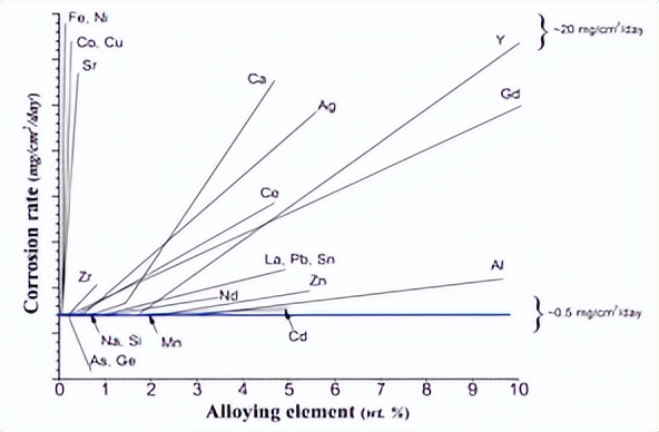 纵然Mg在各种结构应用中可以替代现有的钢、铝合金,成为各种工程应用中最受欢迎的轻质材料之一。然而,低耐腐蚀性是一个主要障碍。通过添加各种合金元素,可以根据需要增强和调整材料性能,但在耐腐蚀性方面总是存在一定的折衷。此外,Mg的挥发性使合金部件制造过程复杂化。同时选择合适的合金元素成为制造业的一个不稳定因素。