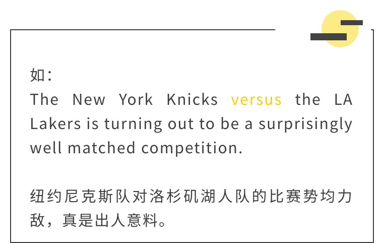 我们在看体育赛事直播时常常看到法国队VS德国队等内容,完整的英文是France versus Germany。