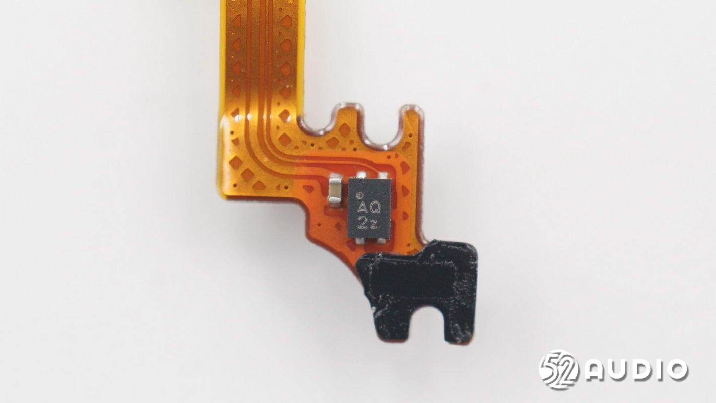 丝印AQ 2z的霍尔元件特写,通过感知磁场变化来获悉手表主机是否竖起,从而告知主控开启后置摄像头。