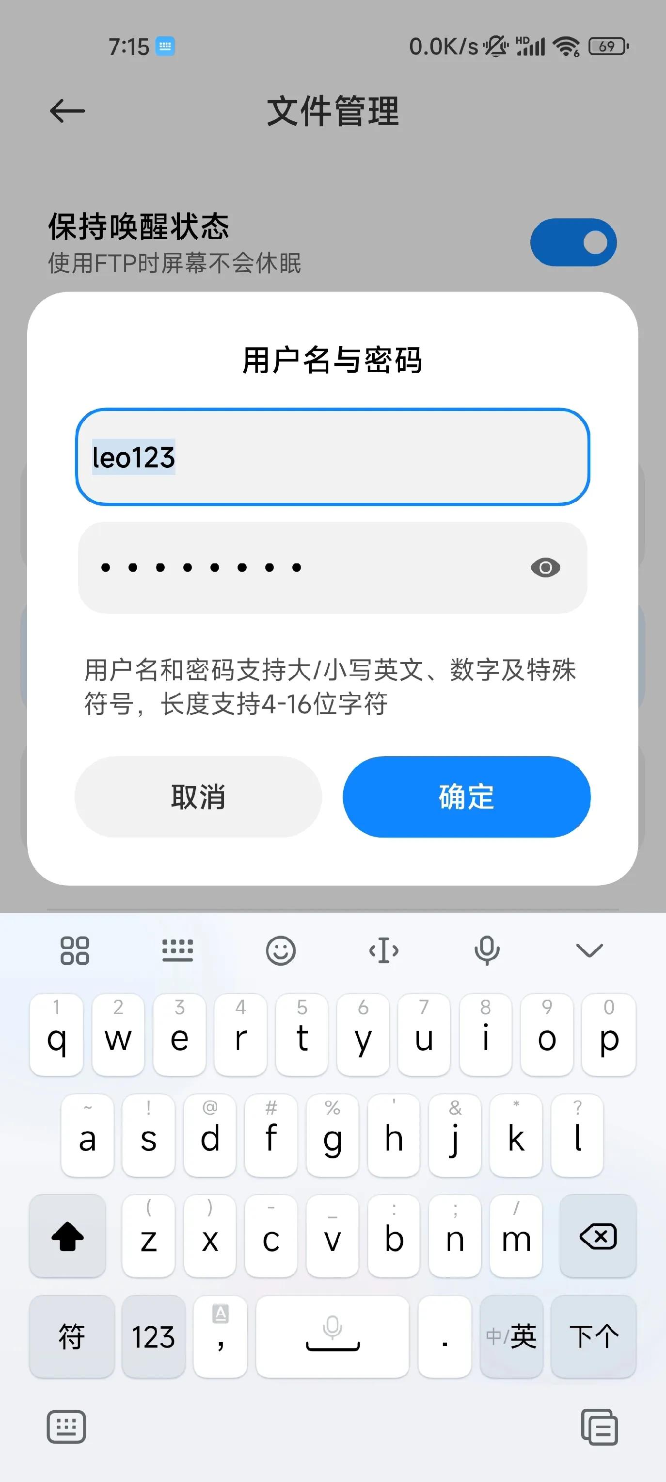 此时会弹出这个提示框,输入设置好的用户名及密码,然后点击登录即可在电脑端访问和管理手机存储