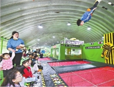 有趣的游戏让小朋友们争先恐后,孙佳颖小朋友在被教练抱起后,拉着妈妈也来体验。孙妈妈勇敢地体验了一把。“好刺激啊,不过更多的是有趣。我们是第一次来体验,蹦床这个项目确实很适合亲子运动,蹦蹦跳跳的,孩子特别喜欢,大人也瞬间像回到了童年,下次我们还要来玩。”孙妈妈笑着说。