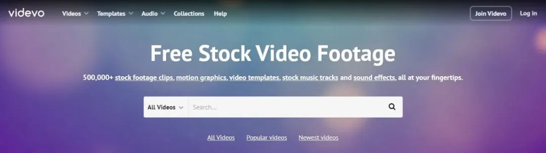 网址:https://www.videvo.ne/ 部分CC0协议个人及商用无需版权,分类细,数量多,视频质量较高,当然也有收费的。