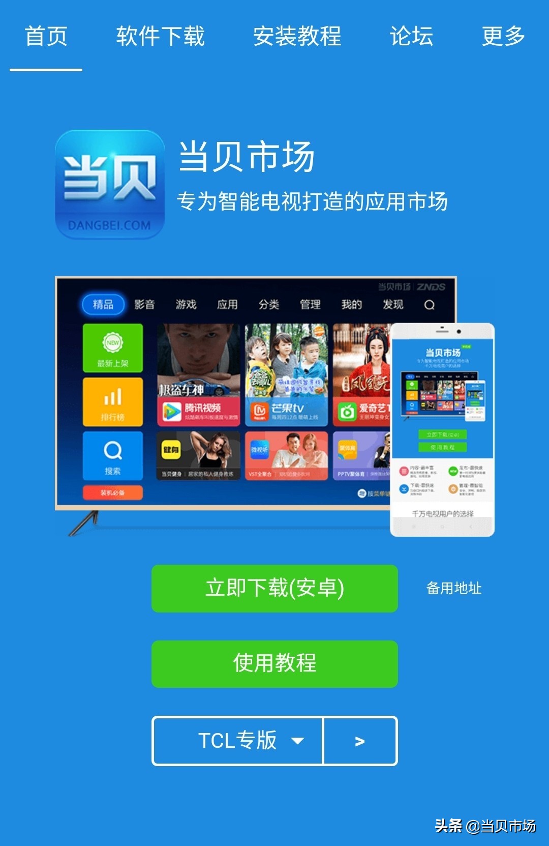 浏览器搜索当贝市场,进入当贝市场官网,下载安装包