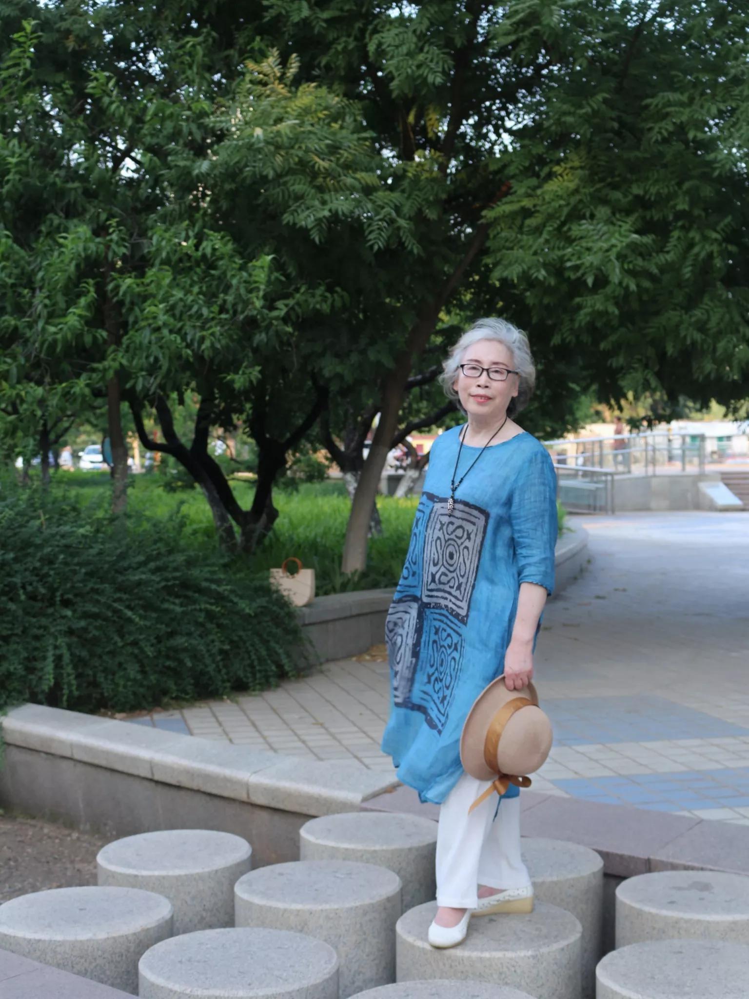一个老年人穿大图案苎麻连衣裙的体验