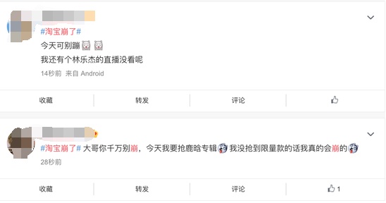 也有网友表示担忧,希望淘宝崩溃不要影响他们看直播、抢专辑。