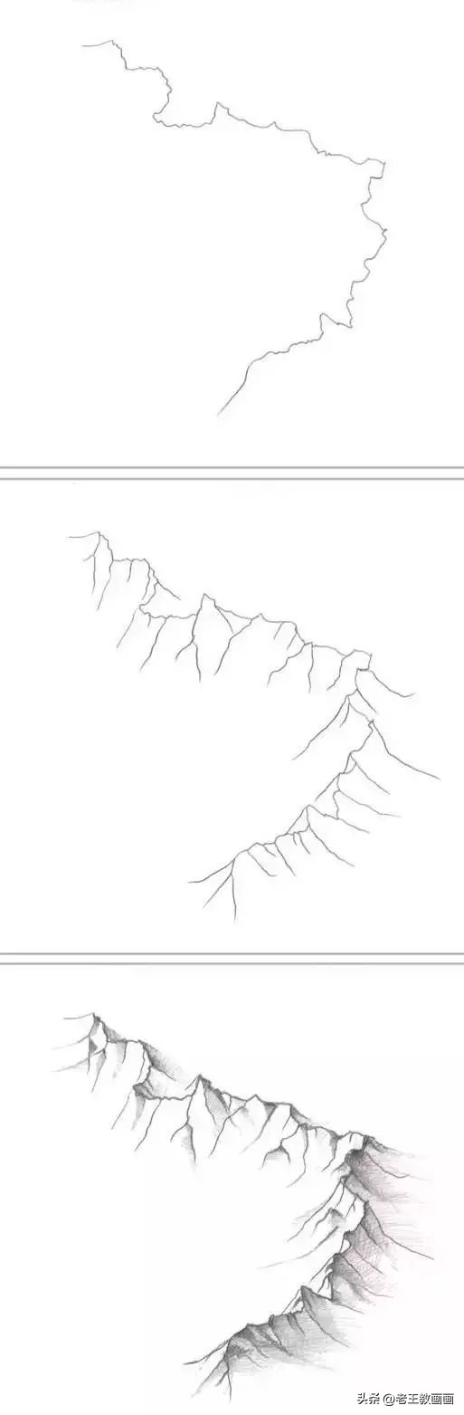 比如,你可以3步画一座山脉