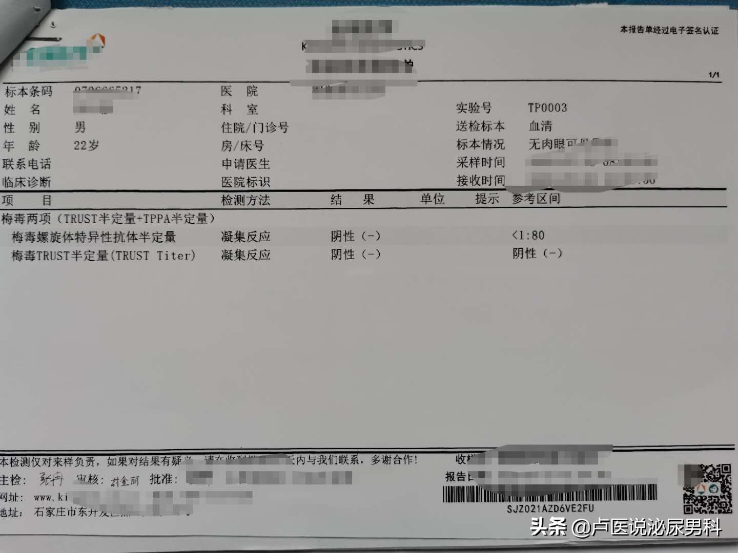 又过了一周,小张的症状没有好转,这个时候在医生追问病史的情况下如实交代,医生及时给小张做了梅毒的检测,检测结果却是阴性,这也是可以预料到的,因为特异性抗体igG一般都需要3-4周左右人体才会产生,那么小张检测的时候正是3周,处于检测“盲区”所以检测结果阴性也在预料之内,医生也及时给小张做了提醒。