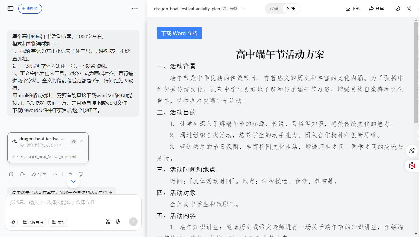 原来用豆包写文章不用调格式!用HTML代码可以直接下载Word!