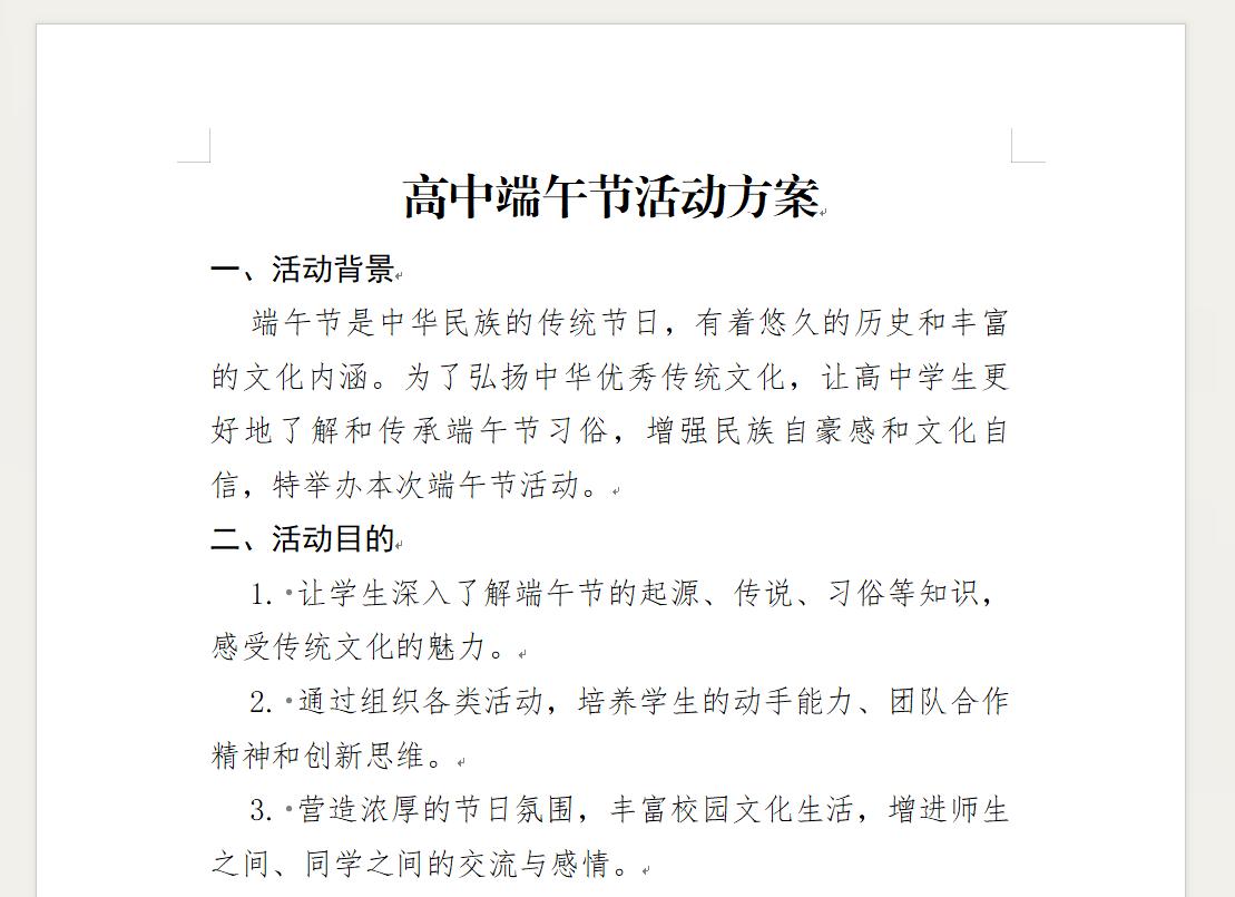 写个高中的端午节活动方案,1000字左右。格式和排版要求如下:1、标题字体为方正小标宋简体二号,居中对齐,不设置加粗。2、一级标题字体为黑体三号,不设置加粗。3、正文字体为仿宋三号,对齐方式为两端对齐,首行缩进两个字符。 全文的段前段后距都是0行,行间距为28磅值。用html的格式输出,需要有能直接下载word文档的功能按钮,按钮放在页面上方,并且能直接下载word文件,下载的word文件中不要包含这个按钮了。