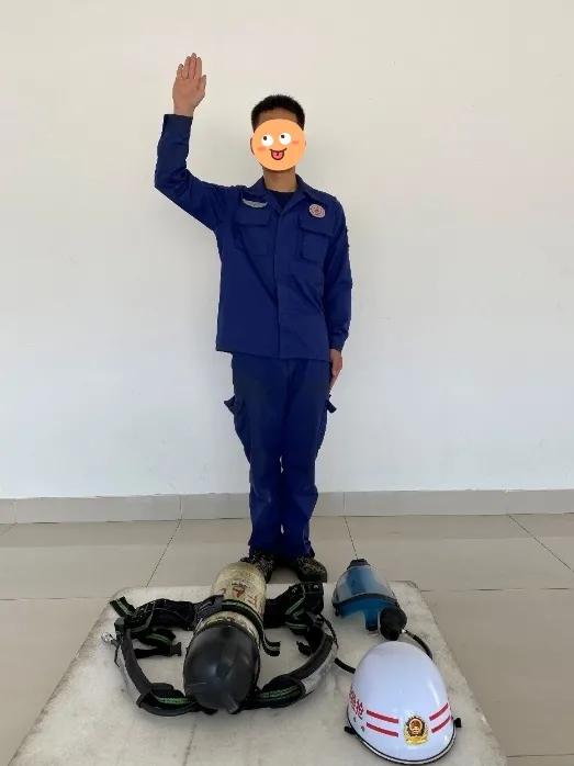 7、空气呼吸器佩戴完成后戴好安全帽,调整好下颚带。