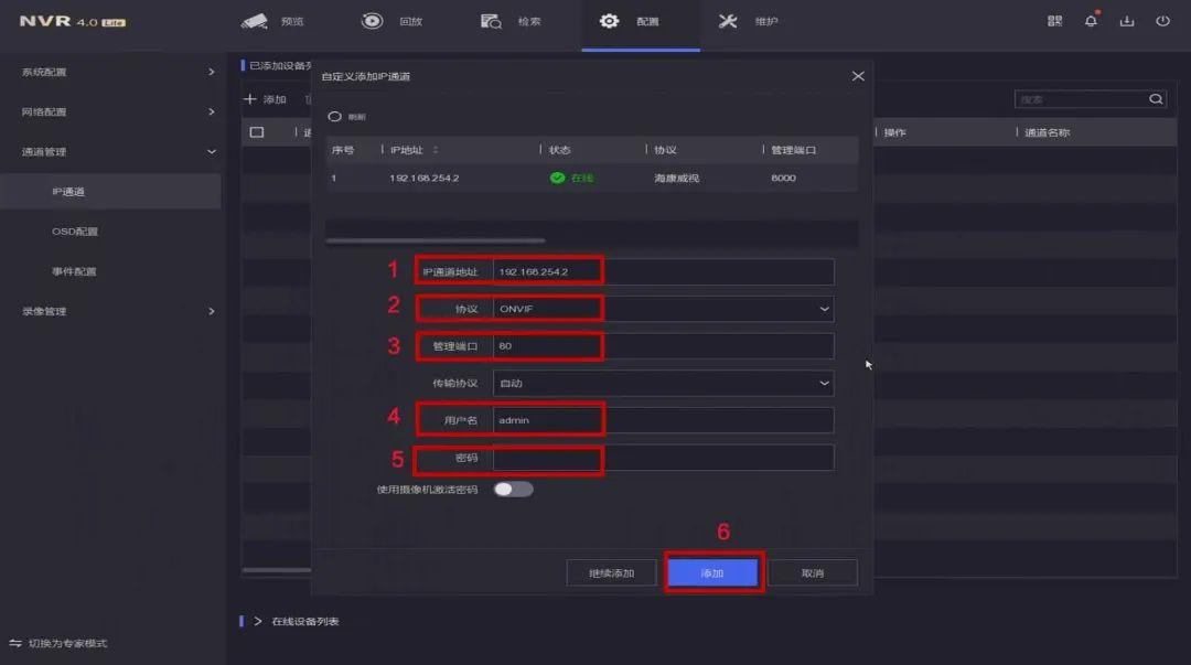海康录像机添加摄像机配置步骤,海康NVR添加其它品牌IPC