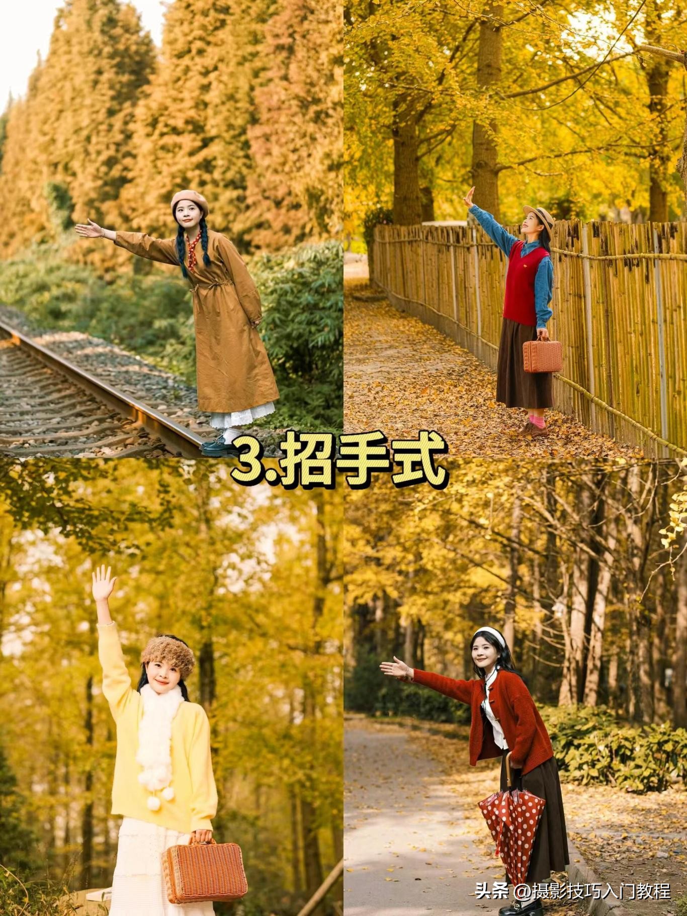 秋季公园拍照,8个拍照姿势学起来,人像照自然大方,太漂亮了