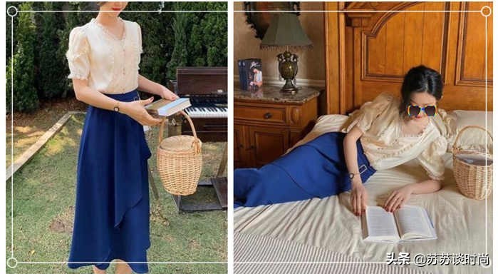 穿蓝色的裙子搭什么颜色上衣好看?试试这几种颜色,高雅有女人味