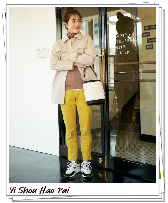 由于它是灯芯绒的黄色小脚裤,看起来温暖而美丽。你可以像轻熟女人一样穿它,而不会变得太随意。它与本季的时尚的oversize米色外套搭配得很好。充满活力的休闲穿搭让你在冬天变得耀眼。