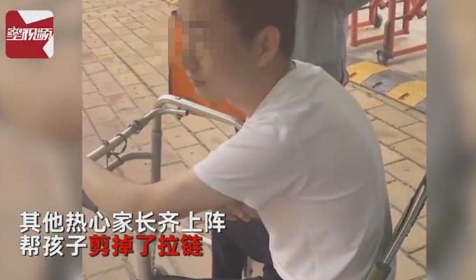 6月7日,河南郑州一考生怕迟到提前两小时到了,结果发现身上有拉链,过不了仪器。其他热心家长齐上阵,帮孩子剪掉了拉链。