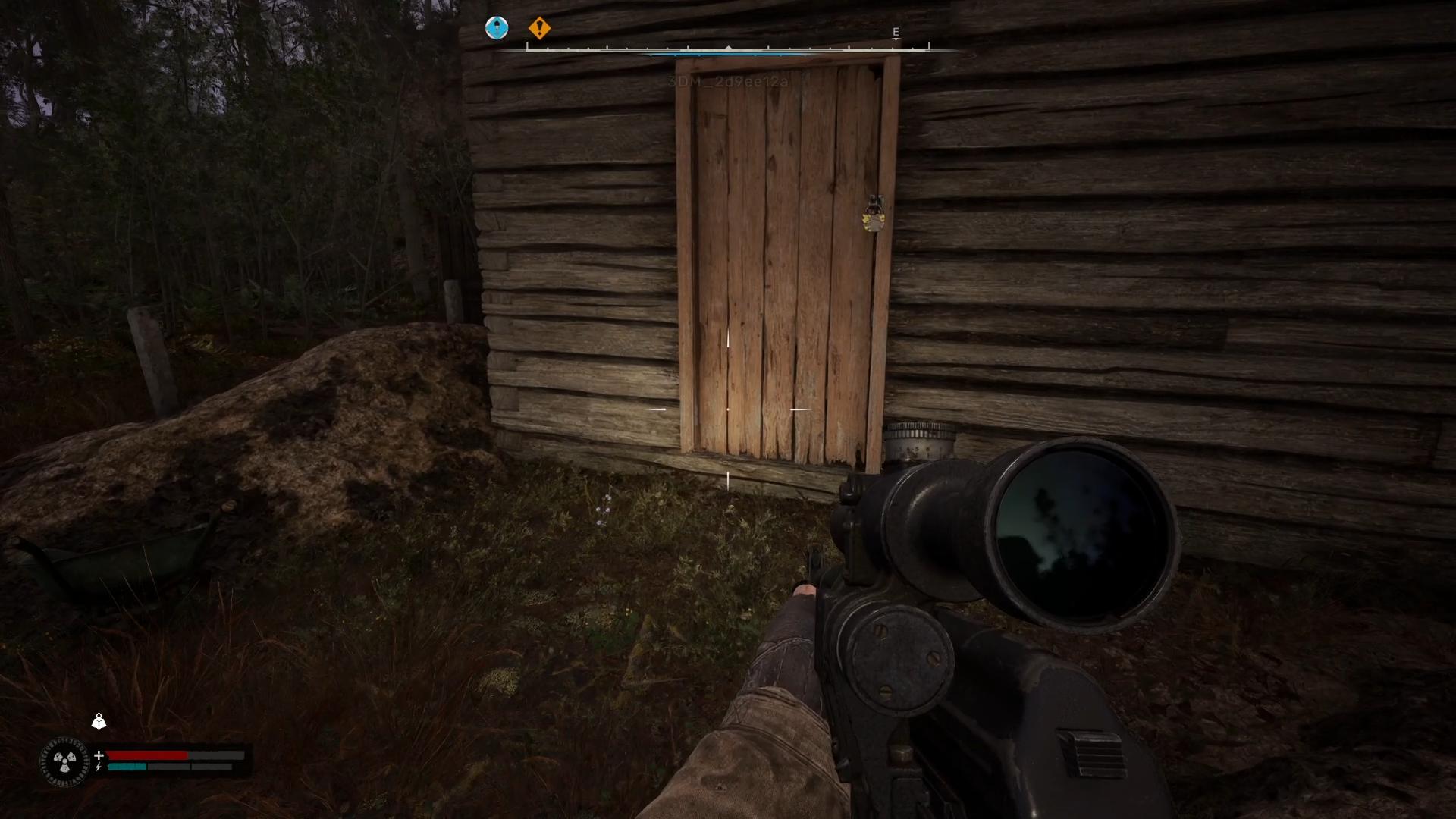 接下来可以顺着废弃村庄一直向前走,可以看到一个碉堡,赫尔曼叫我们进去找涅戈达博士。下图白色圈圈处就是入口的位置,正中间的医疗箱,可以用枪械或者小刀打开,里面有绷带或者医疗包。