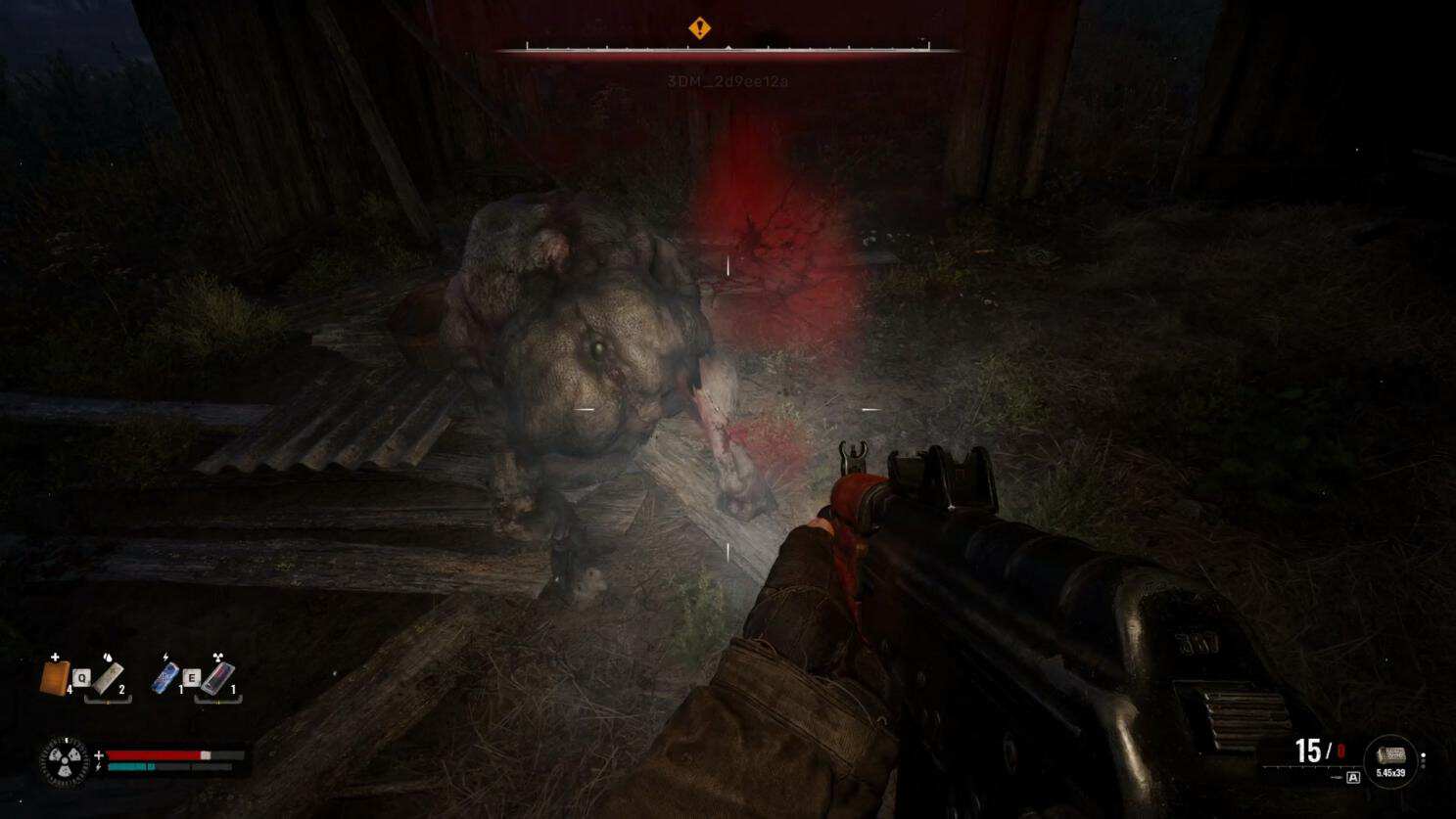 在路程中我们可以看到一个村庄,这里是我们通往主线路程中的必经之路,不过要小心,这里会有变异的怪物袭击,我们可以使用刚刚在下水道捡的AKN-74U进行反击。