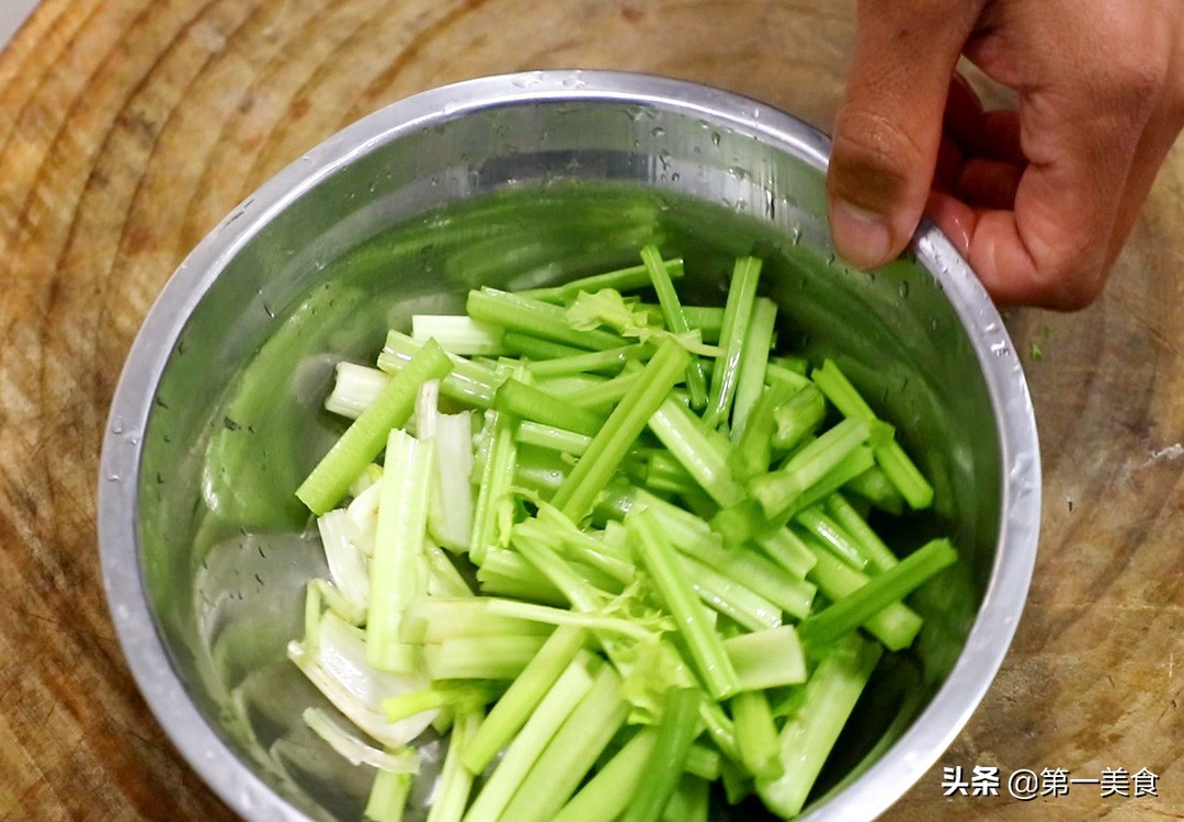 首先,我们准备洗净的芹菜两根,切成段备用。