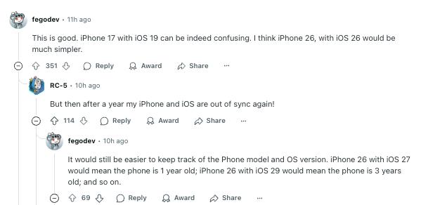 这消息一传出后,多数网友觉得这改动特实用:“iPhone 17 配 iOS 19,光记版本号就头疼。以后 iPhone 26 如果配 iOS 26,一听就直到是哪年的机器,太省事了!”