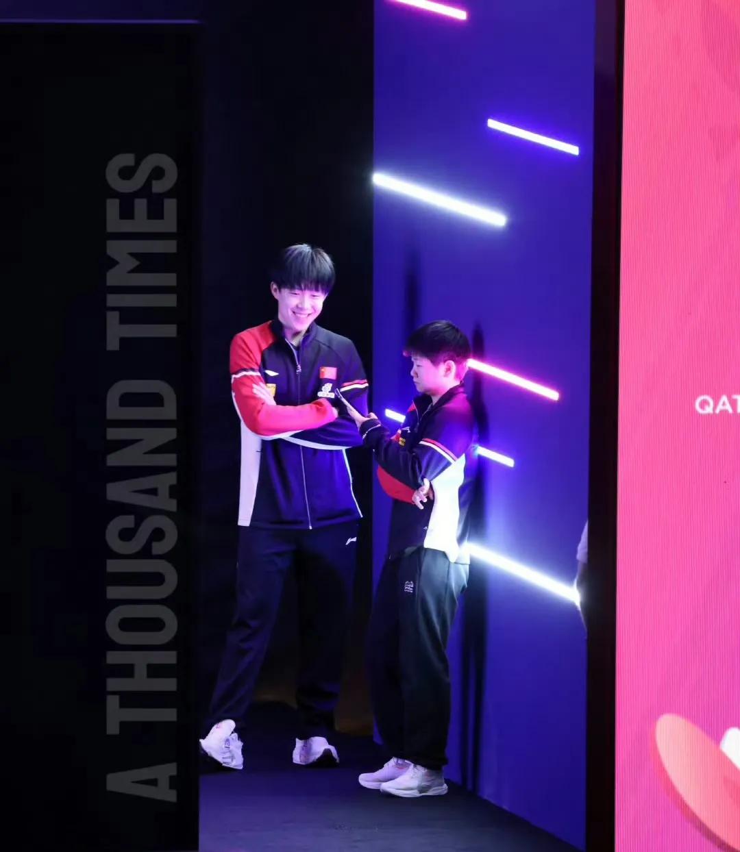 在两人的夺得世乒赛复刻杯颁奖的幕后,也被镜头捕捉到了有趣的互动。