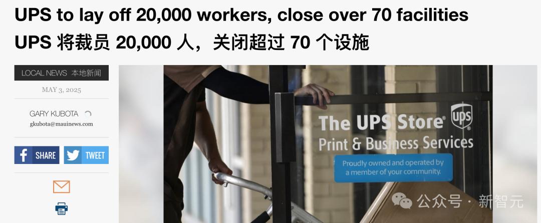 2025 年初,联合包裹服务公司(UPS)宣布计划裁员20,000人,这是UPS 116年历史上规模最大的裁员之一。