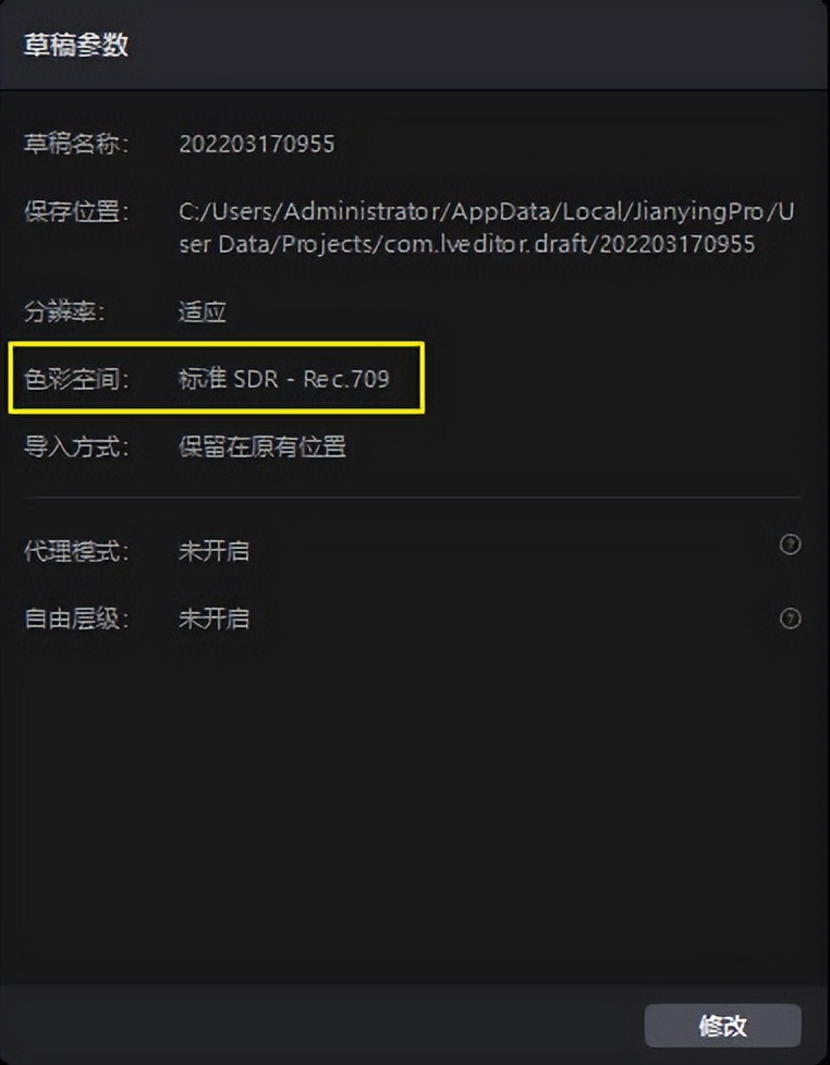 Pr序列设置—工作色彩空间默认Rec.709
