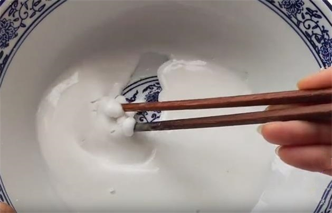1.今天和大家分享一个如何在家自制土豆粉的方法,无添加更健康。首先我们在碗中加入50克土豆淀粉,然后加入50毫升的清水搅匀,搅至像这种非流动流体的状态就可以。