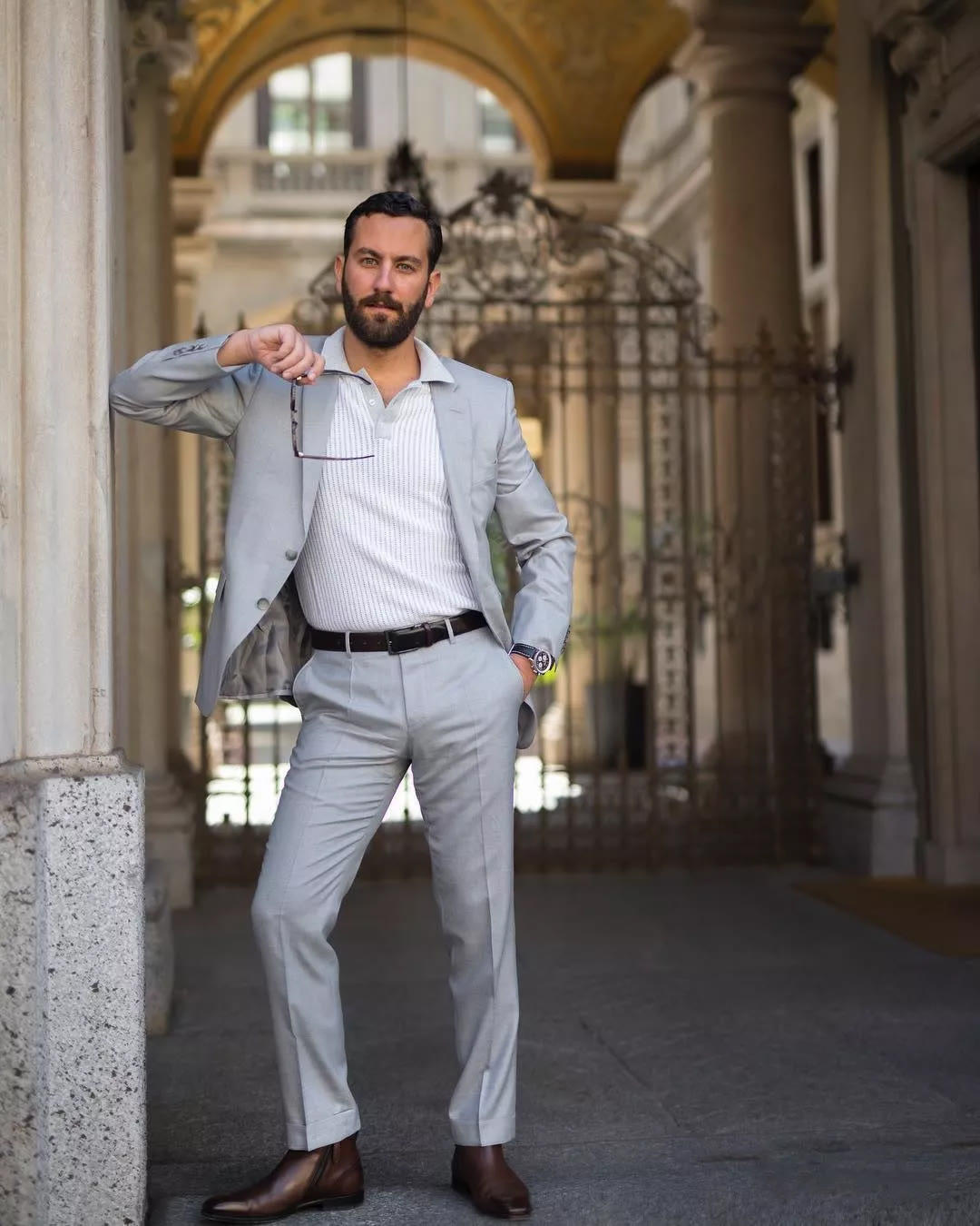 棕色皮带也是很百搭的存在,融合了复古、雅痞风格,相比黑色要更显年轻时尚。