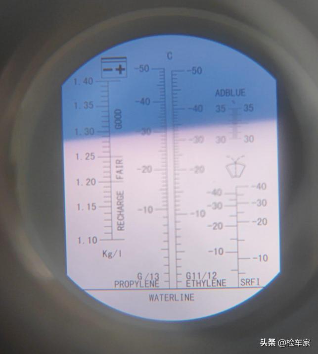 由于水箱被拆过了,所以冷却液肯定也是要按程序进行更换的,可以通过上面的刻度看到冰点正常,应该是在店里加注的,4S店也不差这点油水钱。
