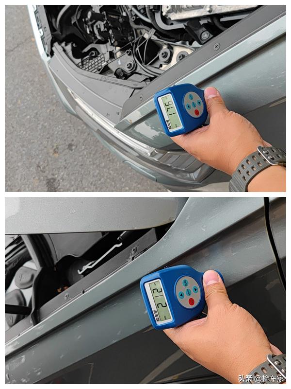 通过漆面的数值可以看到右前翼子板也喷过漆了,当时拍的照片看不到这个位置,应该是在事故中被波及到的。