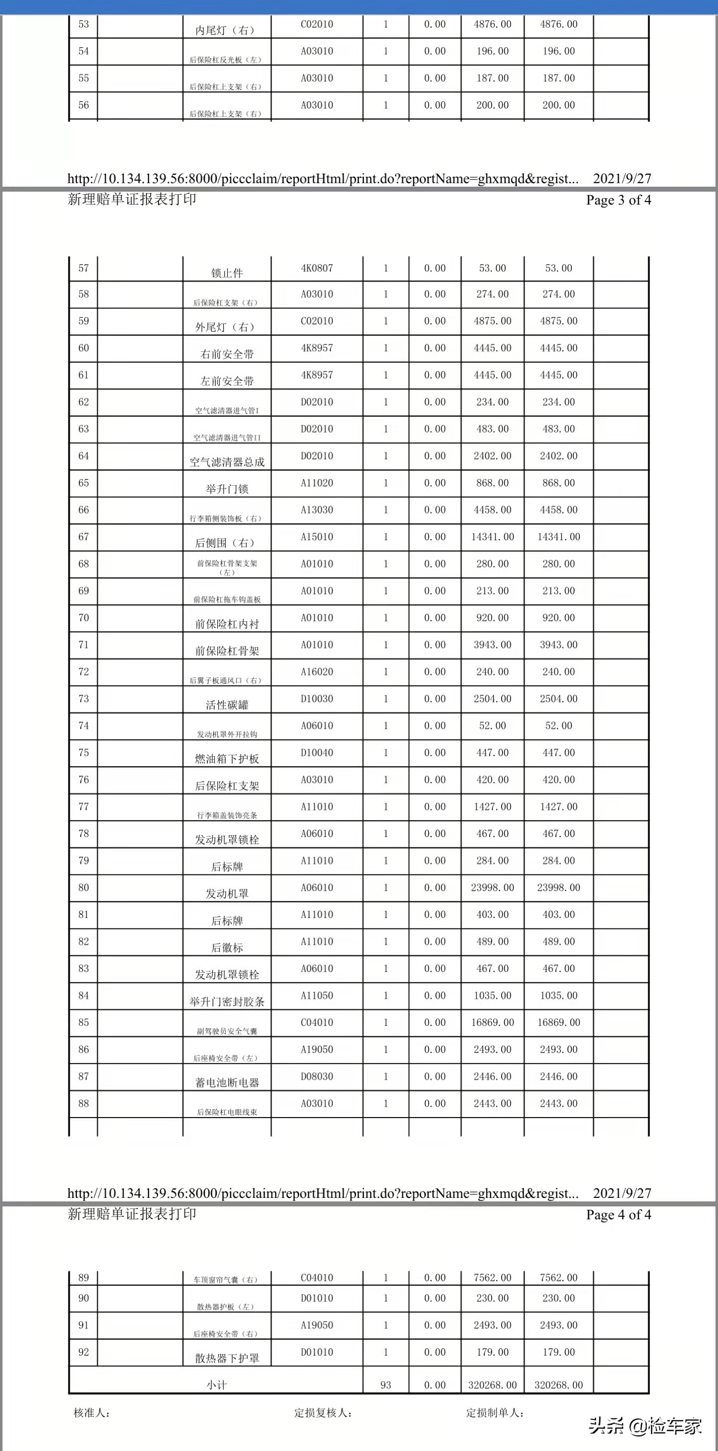 最后就来看看这张罕见的维修清单吧,最后结账32万!据车主表示这还是一部分的费用,后续可能还有些啥杂七杂八的费用等肇事方那边确认好了再一并出具,大头我估计大哥去签字的时候手都是颤抖的吧。