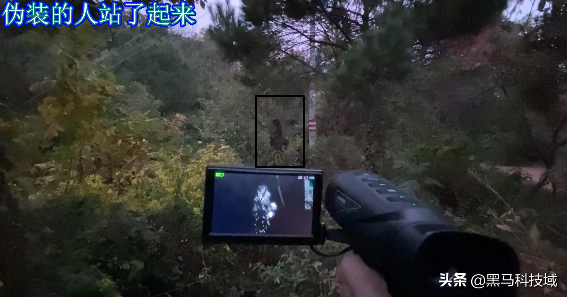 我将隐藏者叫起,他站了起来,热成像仪里的人形热源也同步站了起来。课件热成像观察隐藏起来的热源还是十分方便有效。