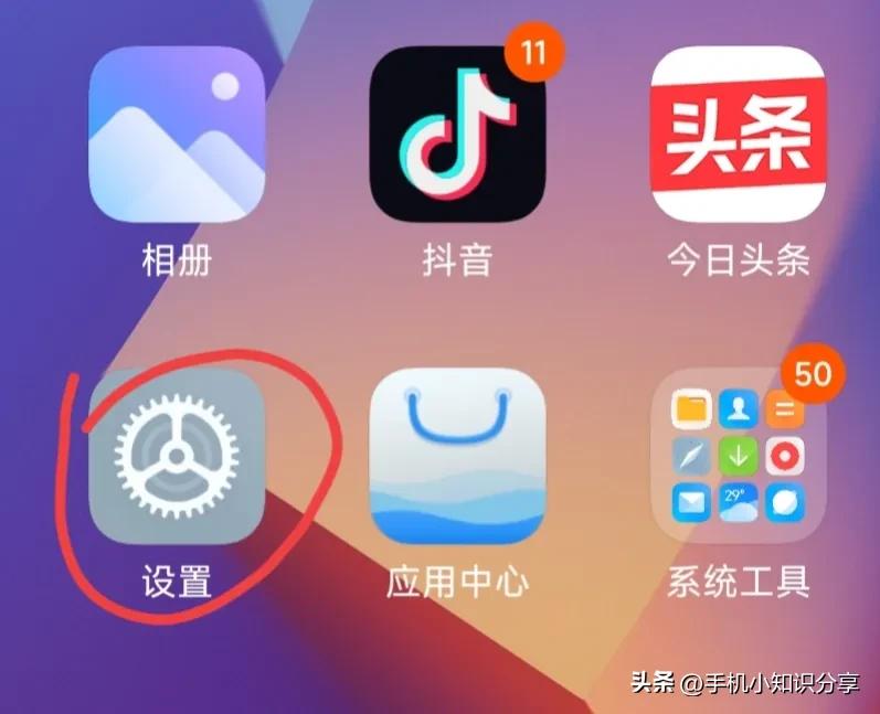 如果尝试了重置网络以后还是无法显示验证码,那么就检查手机设置,确保通知与状态栏中的信息权限开关已开启。找到桌面上的设置并打开,(如上图所示)