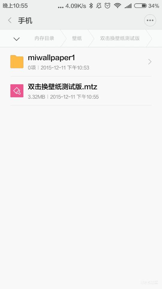 下载双击换壁纸测试版主题文件(为了方便新建文件夹操作);长按主题文件,重命名后缀为.zip,得到 双击换壁纸测试版.zip,点击解压到当前文件夹。主题格式为xxx.mtz,重命名为xxx.zip后当可解压(小技巧请收藏)。