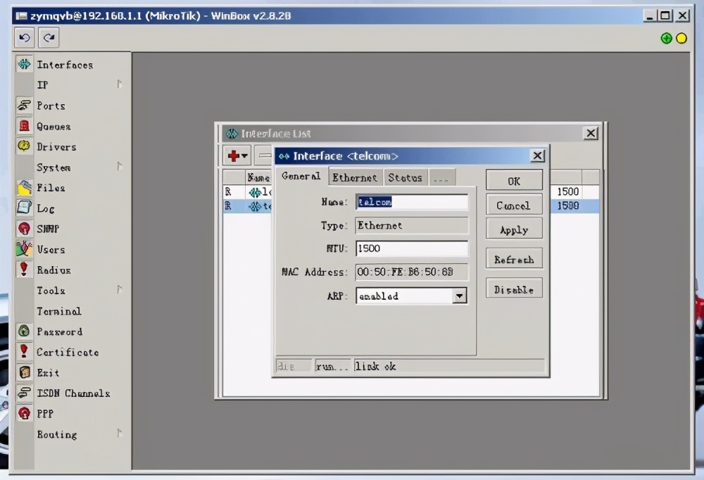 (1)点左侧INTERFACE,双击ether1将name改为lan,同样将另两个改为cnc和tel。
