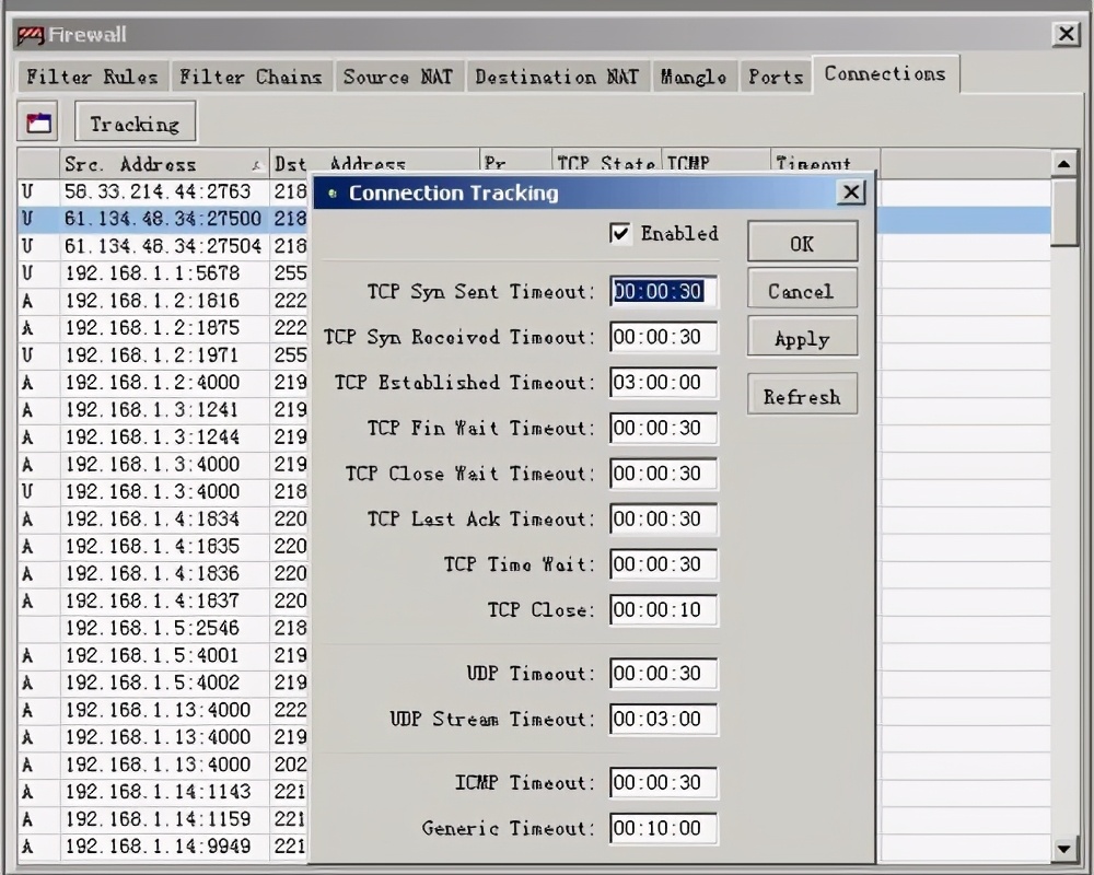 负载平衡:IP—firewall—connections 点Tracking 看我图设置: