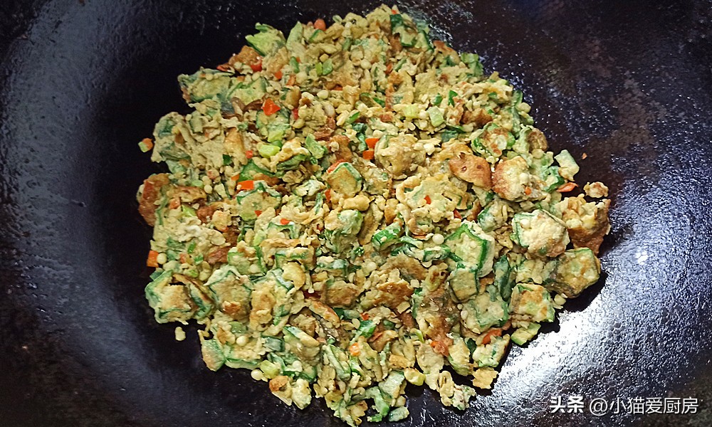 (6)炒的时候要大火快炒,这样可以让秋葵保持脆嫩的口感,而且鸡蛋炒出来也香。
