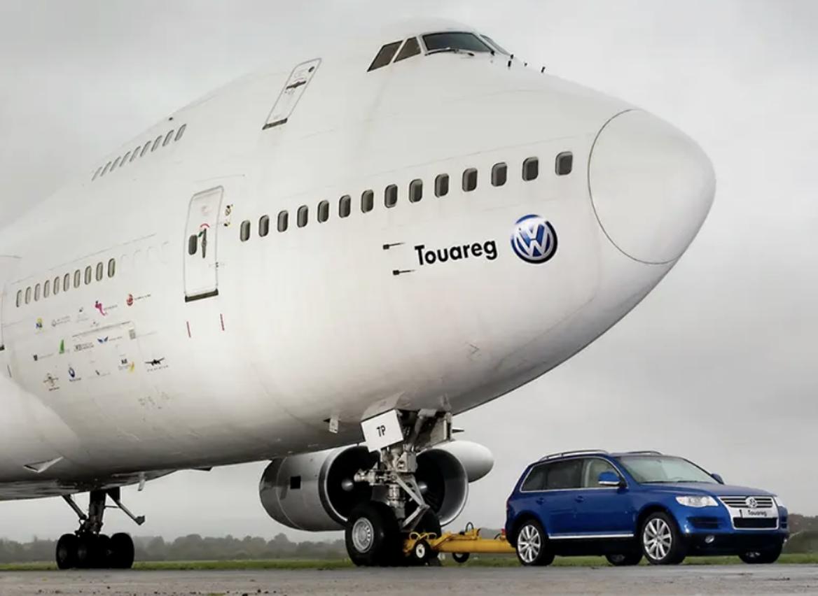 2006年11月,一辆市售的途锐V10 TDI柴油版车型,将一架155吨的波音747客机,以8km/h的速度拖行了150米。